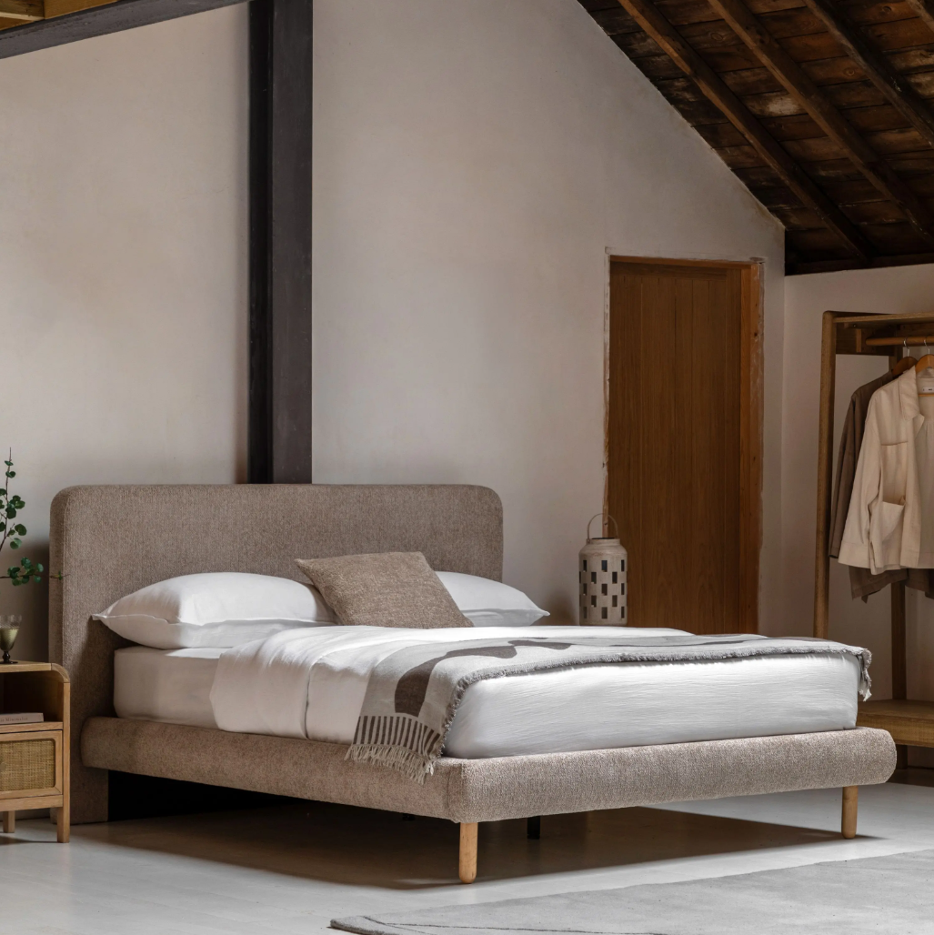 This beautifully designed bedstead embodies modern elegance. Featuring slim wooden legs and a softly curved headboard, it offers a sleek, contemporary look while providing exceptional comfort and lasting style.