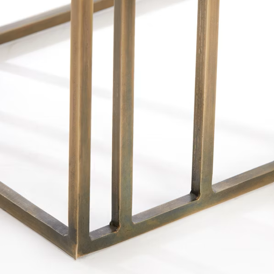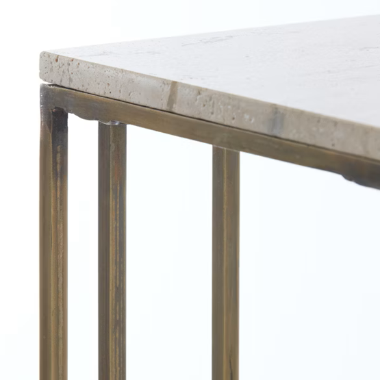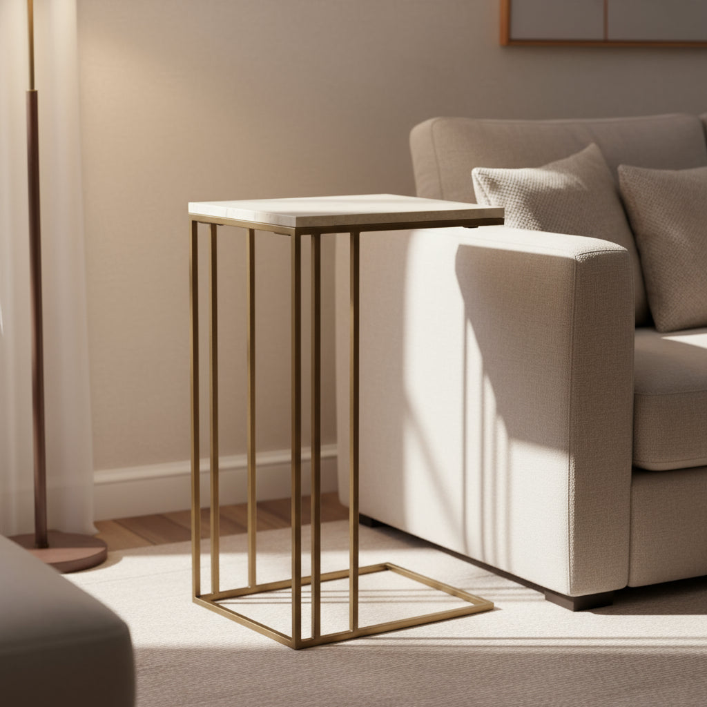 Crafted with a sleek metal frame and a square marble top, this piece injects modern elegance into your living space. Nestled beside your couch, it effortlessly blends form and function, offering a convenient spot for drinks, lamps, or your favourite decorative treasures.