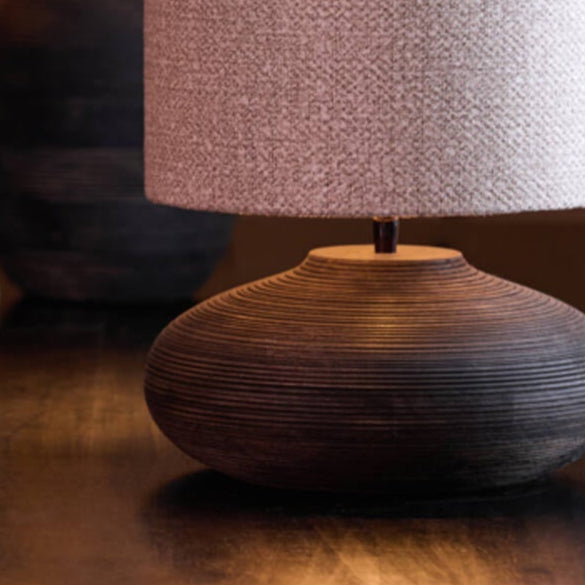 Add a touch of grounded elegance to your space with the Arlo Table Lamp. Featuring a low-profile, sculpted base in a rich, dark wood tone with fine ridged detailing, Arlo offers a subtle yet striking focal point. The natural woven fabric shade complements the base with warm texture and soft diffusion—ideal for creating a relaxed, ambient glow.