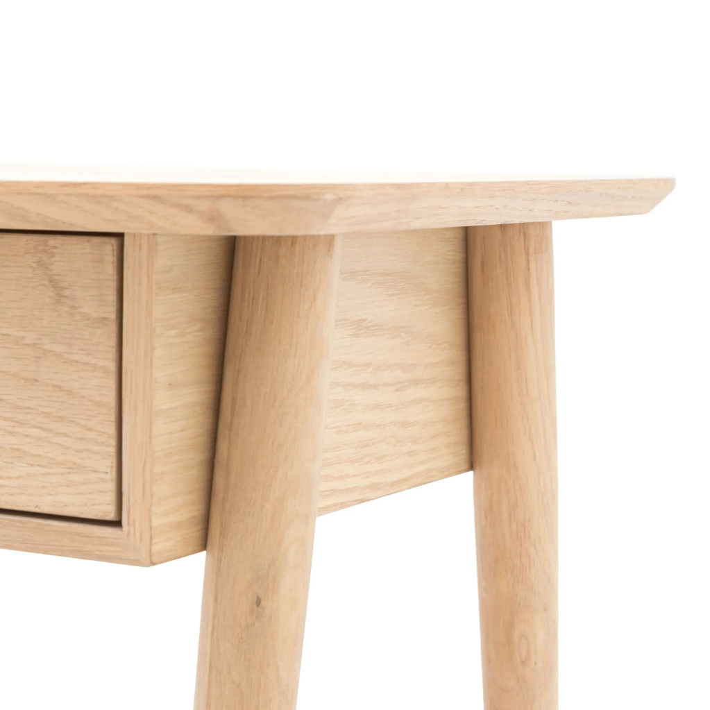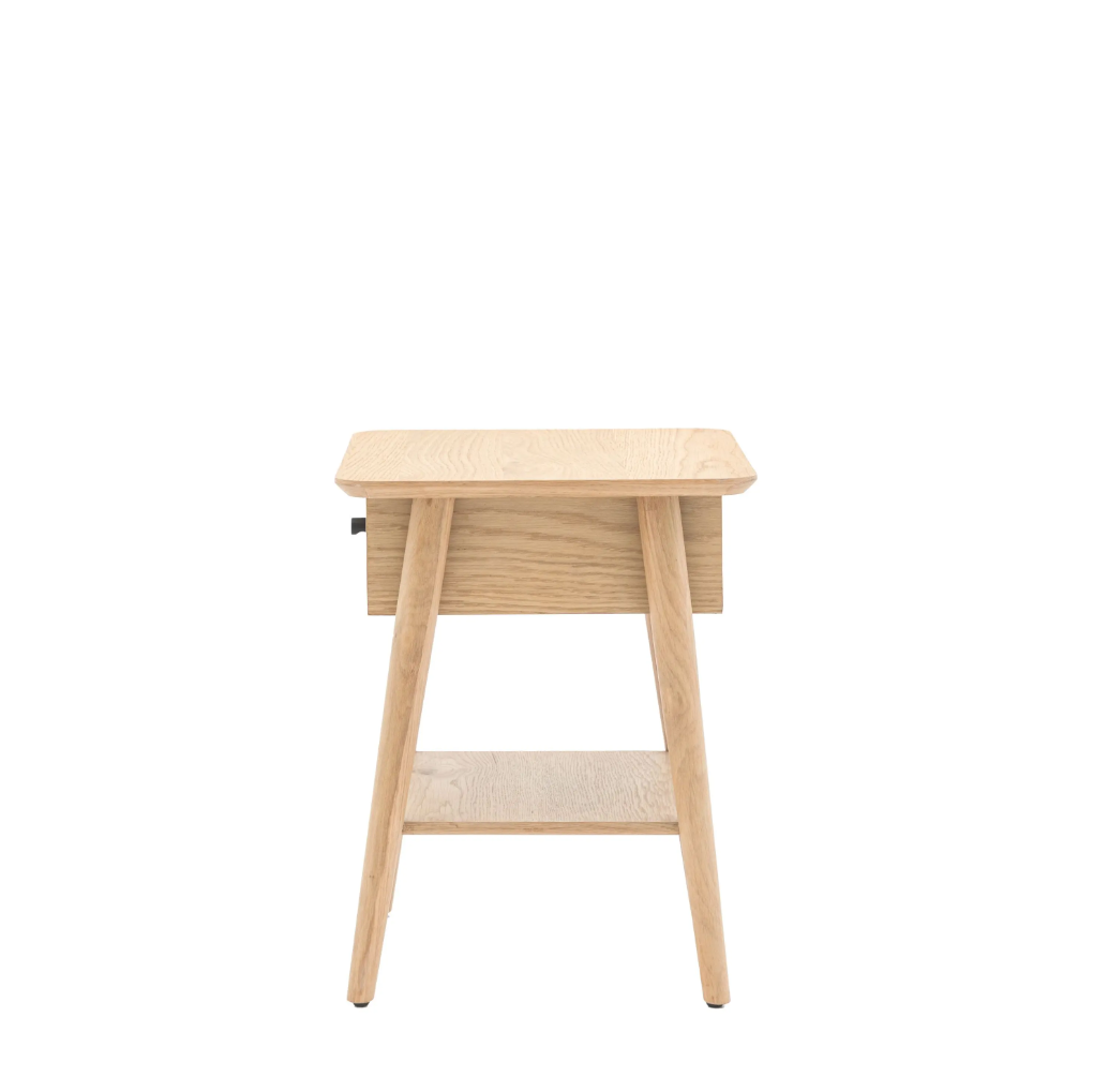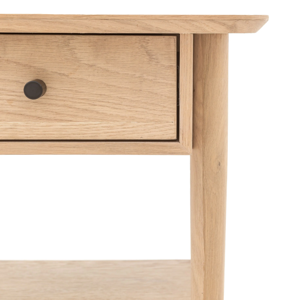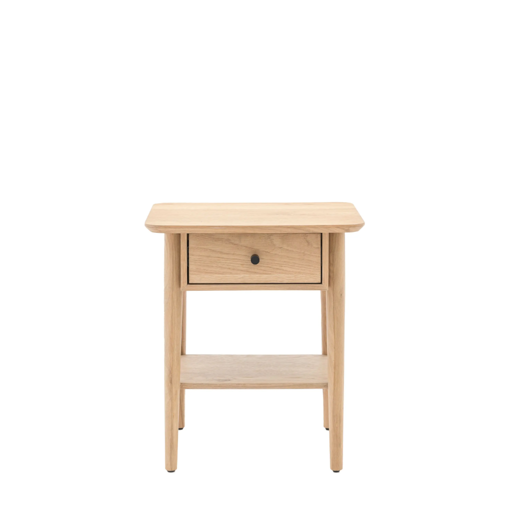 This Hawfield drawer bedside table is a stylish and functional addition to any bedroom. Crafted from high-quality solid oak, this bedside table features a clean, minimalist design with tapered legs and a single drawer for storage.