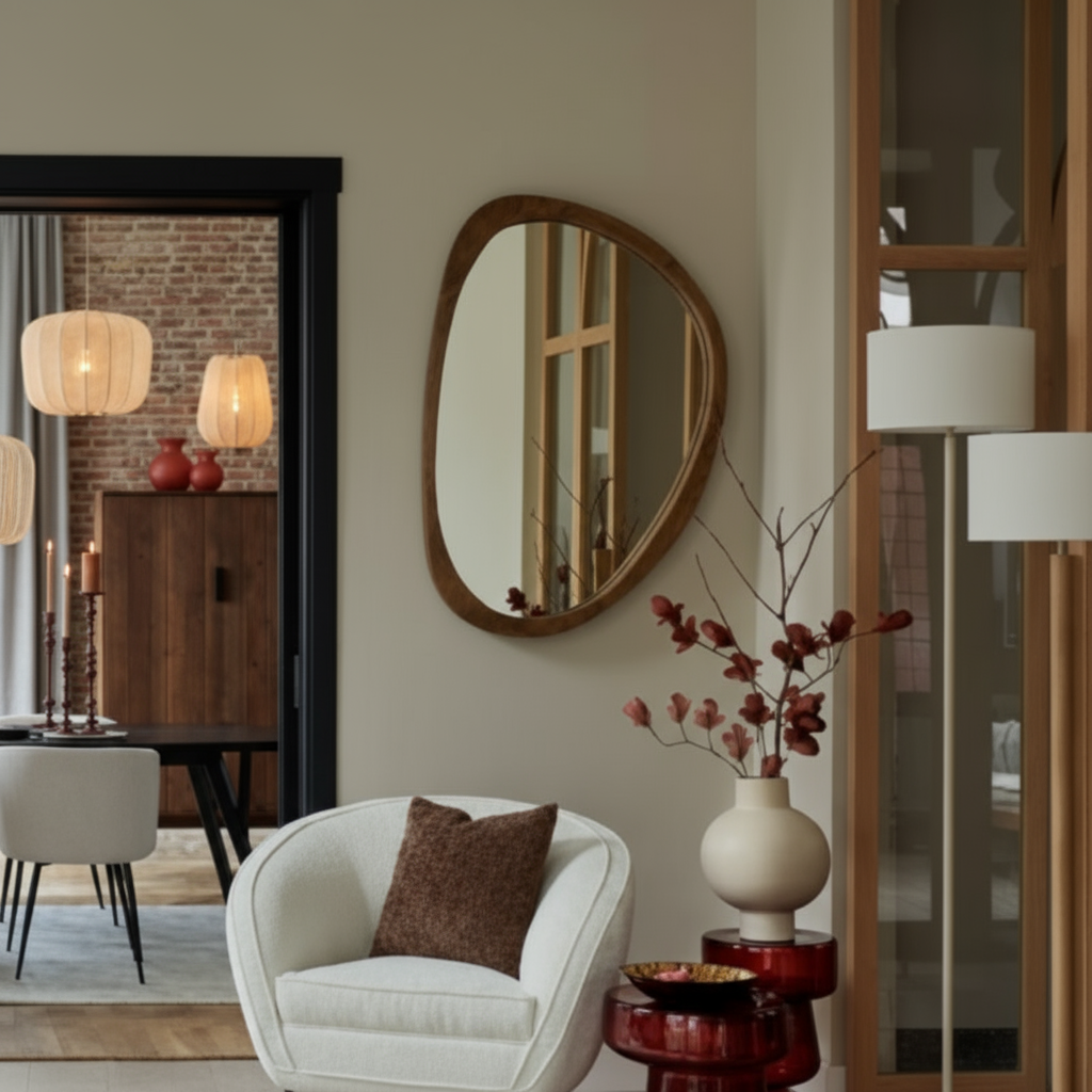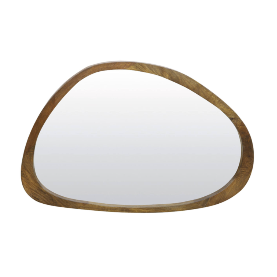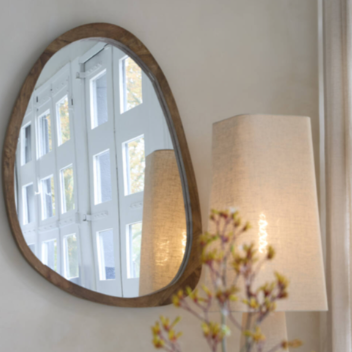 Add an organic touch of elegance to your space with The Sora Mirror. Featuring a beautifully handcrafted, free-form wooden frame, this mirror embodies natural charm and modern artistry. Its smooth, asymmetrical shape and warm wood grain bring a soft, contemporary feel — perfect for entryways, bedrooms, or living areas.