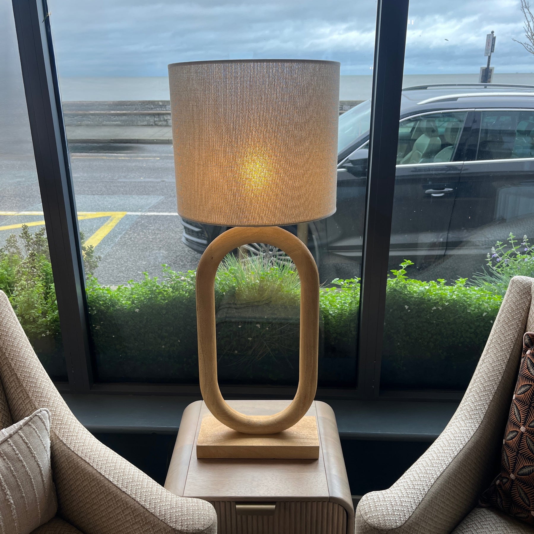 Elevate your space with timeless elegance and modern charm. The Loop table lamp features a distinctive open oval base crafted from warm-toned wood, offering a sculptural silhouette that blends beautifully into both contemporary and classic interiors.