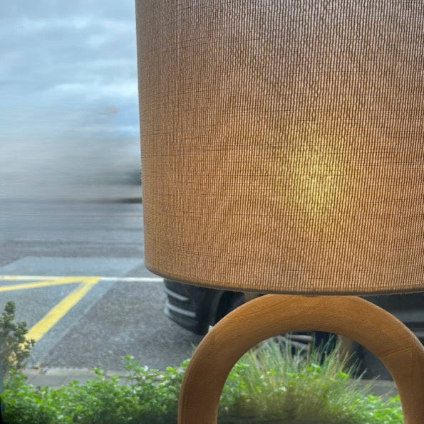 Topped with a textured fabric shade that casts a soft, ambient glow, The Loop is more than just a light source, t’s a statement piece. Whether placed on a side table, console, or nightstand, it adds a sense of warmth and sophistication to any room.