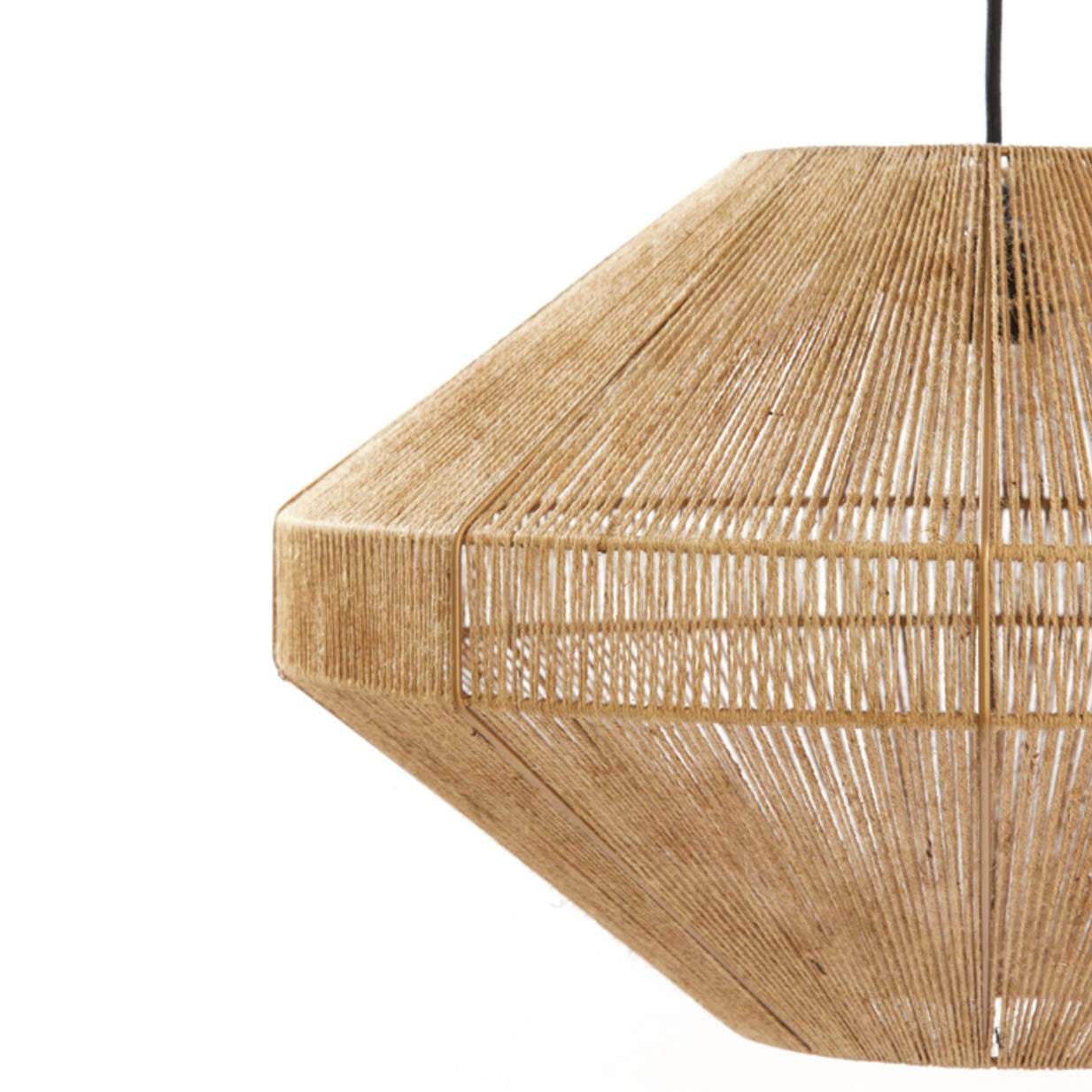 The pendant’s distinctive shape and natural fibres bring a modern organic aesthetic, making it a beautiful choice for interiors that value craftsmanship and warmth.